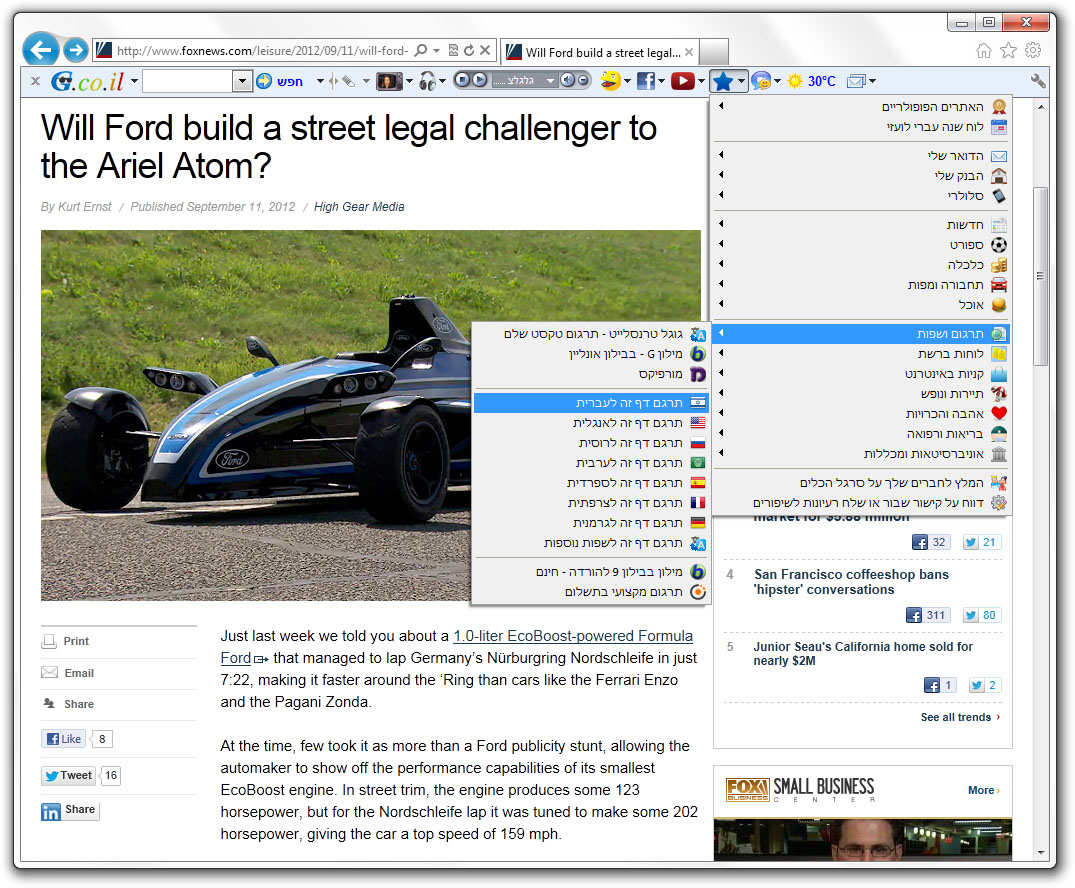 האם ברצונך להתקין את סרגל G? הסרגל מאפשר לך לתרגם מילים, משפטים ואפילו דף שלם בכל השפות » התקן בחינם למידע נוסף